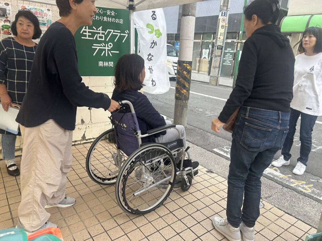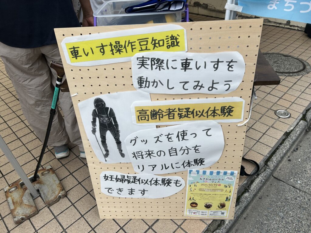 コミュニティ•オプティマムからワーカズでの働き方の紹介コーナー。妊婦さん体験や車イスで介助する体験もできました。
