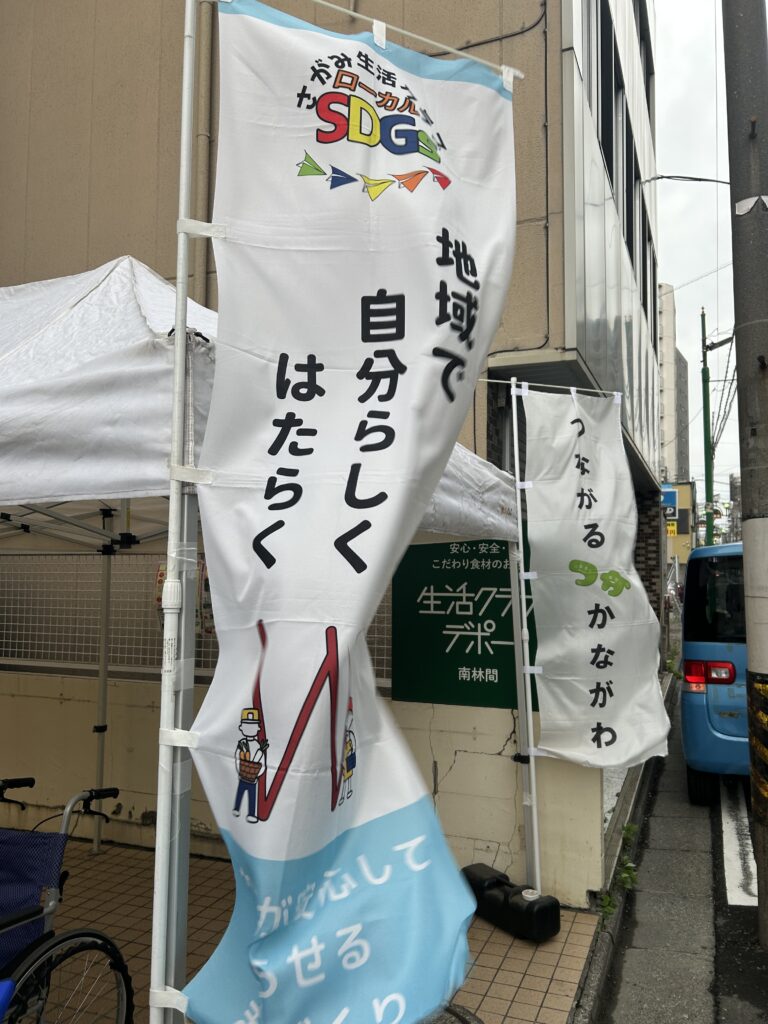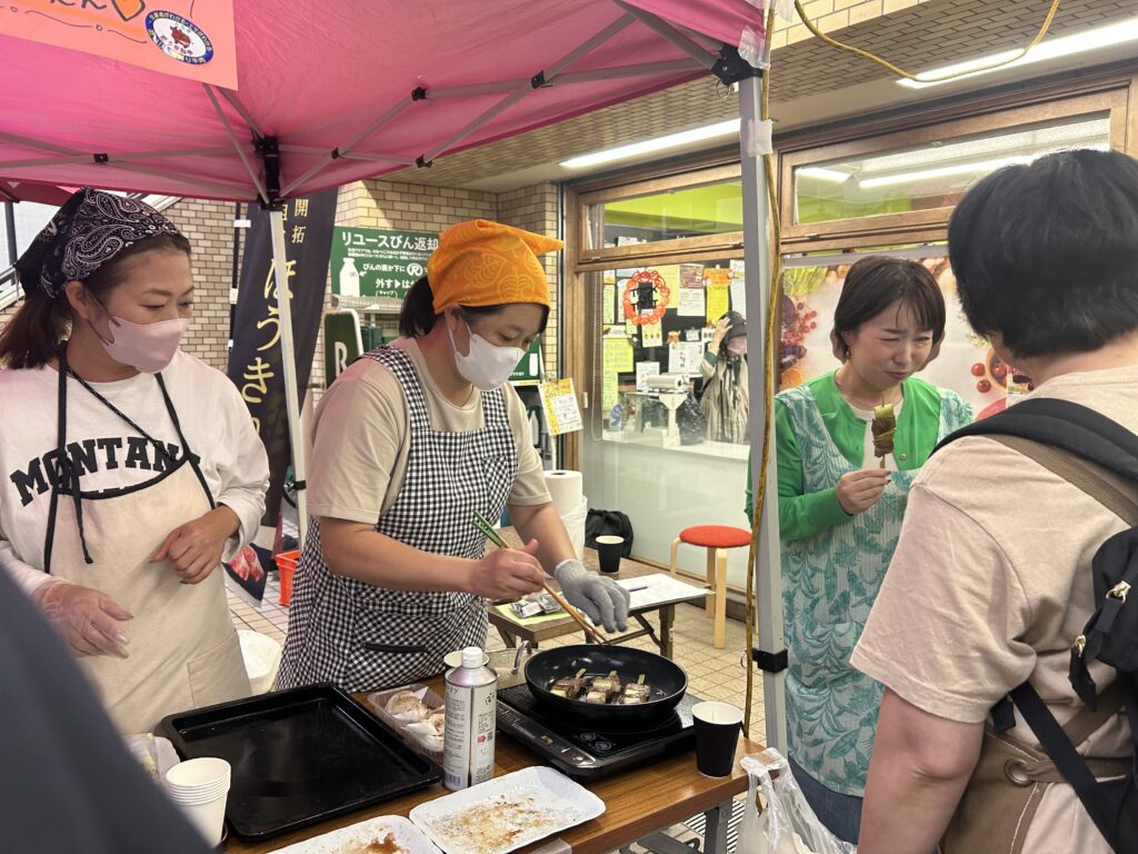 南林間デポ前。わくわくワークフェスタ。ほうきね牛の串焼きを試食できたり、マイクローブナチュラルファーマーズの有機野菜を生で食べて美味しさを味わったり、にんじんの葉っぱを天麩羅粉で揚げてこんな食べ方できるのを教わったり、、、名前のとおりワクワク、、、